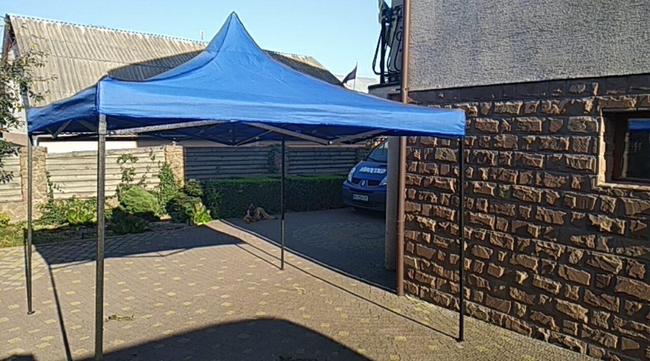 Розміри тентів стандартні. Кольори: синій, зелений, червоний, білий.