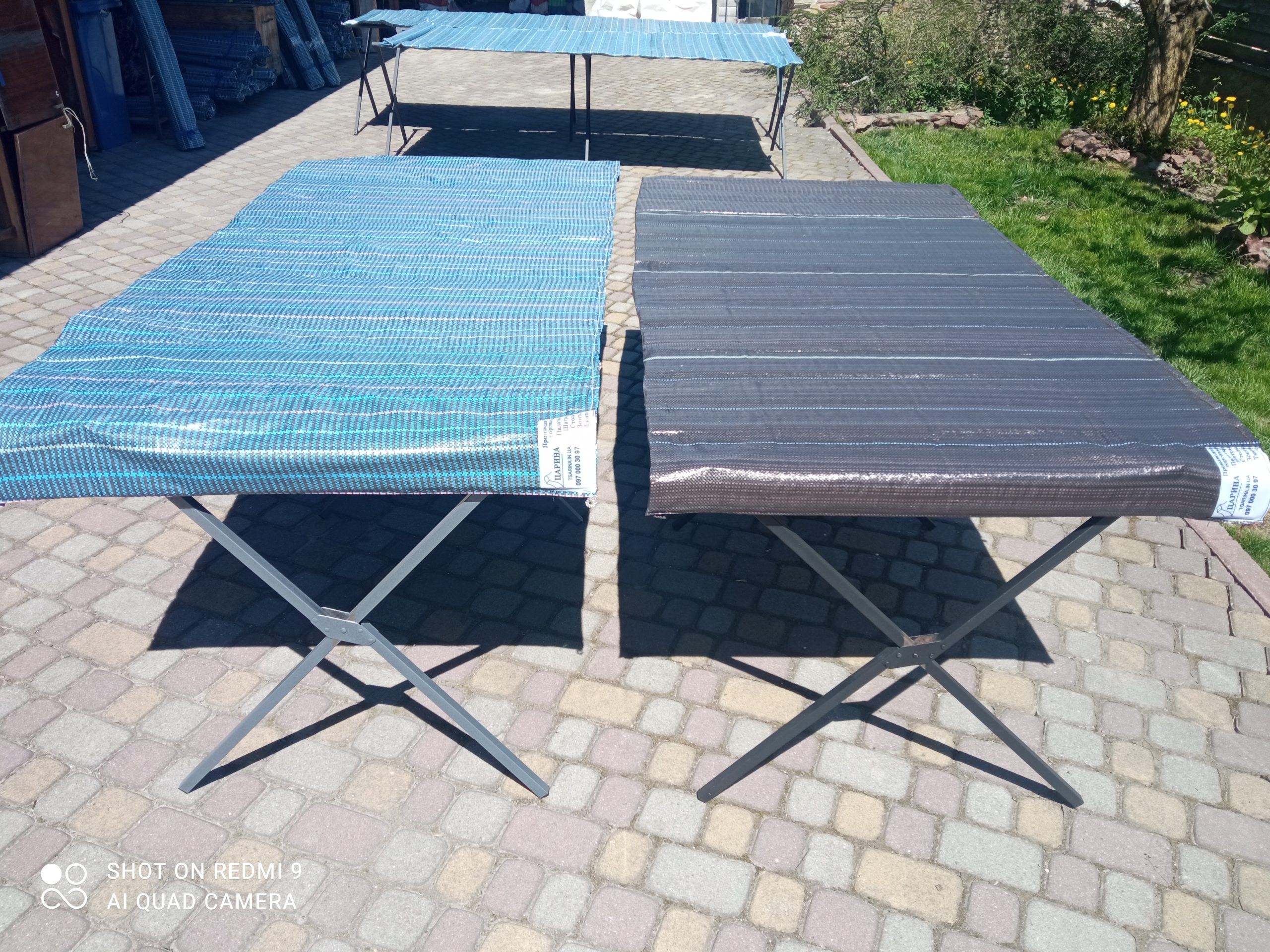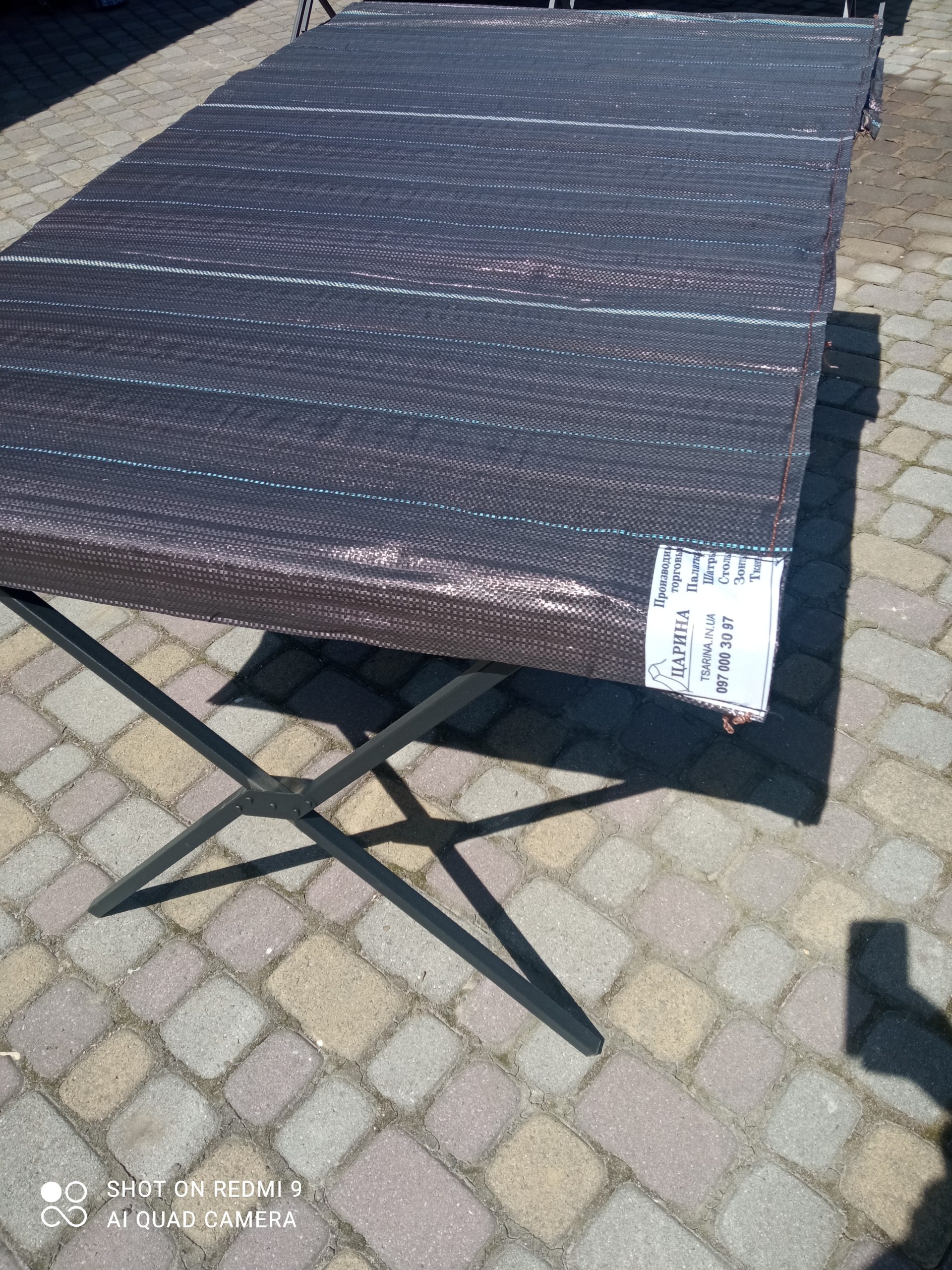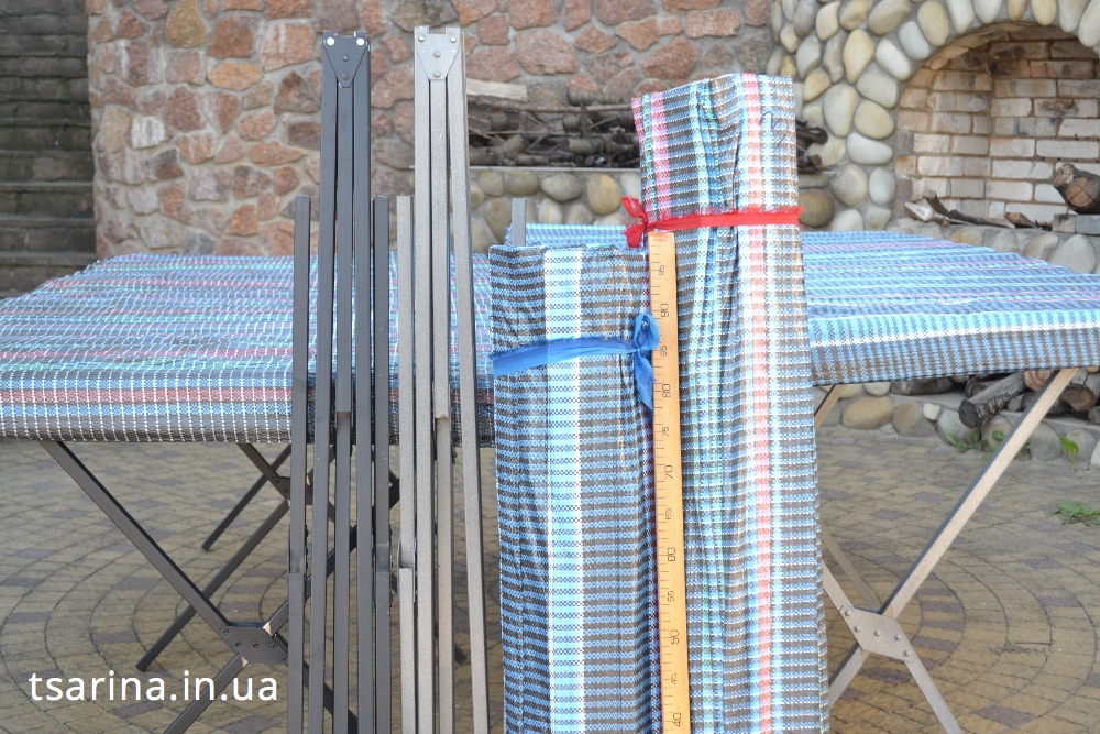 Стільниця — розкладна. Дерев’яні планки обшиті поліпропіленовою тканиною 65 або 90 г м2. Найкращий вибір для вуличної торгівлі, дуже зручний в експлуатації. Займає мало місця в складеному стані. Розмір стола можна вдало підібрати до розміру торгового намету.